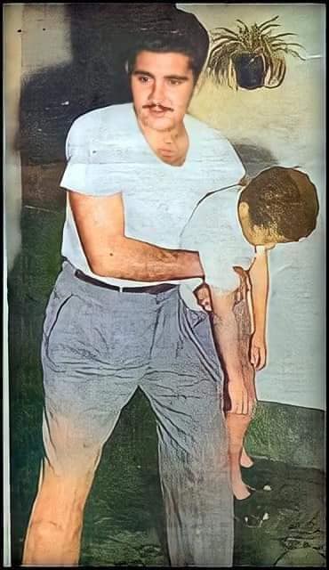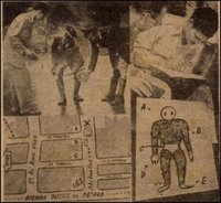 Gustavo Gonzales representa o modo como agarrou um dos seres que o atacaram. Imagem colorizada por: Bruce Oliver.