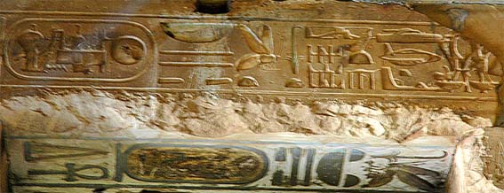 Mas na verdade o que aconteceu é que naquele local foi substituído o título real de cinco camadas de Seti I pelo de seu filho e sucessor, Ramsés II. No meio da Egiptologia é sabido que se substituiu o escrito do hieróglifo de Seti I que estava grafado “aquele que repele as nove alianças” pela expressão “aquele que protege o Egito e supera os países estrangeiros”.