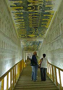 Chamou minha atenção a tumba de Ramsés VI – também conhecida como KV9, descoberta pelo pesquisador James Burton nos anos de 1820. Trata-se de uma das tumbas mais conservadas do Vale dos Reis, localizada em lugar privilegiado na parte central do vale e ao lado da tumba de Tutankamon.
