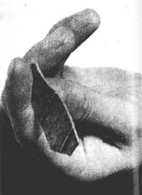 Eu já não estava tão perto quando virei a cabeça para trás. Eu vi um dos homens levantar algum tipo de aparelho que levava ao seu lado e um feixe de raios de luz veio em minha direção. Eu comecei a correr de novo, mas imediatamente, eu senti como se eu fosse cortado em duas partes por alguma ferramenta de corte ou por um jato de ar comprimido e eu caí”.
