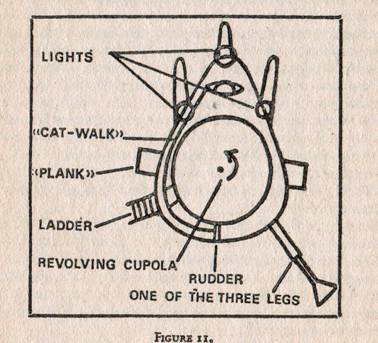 Um dos homens veio ao seu encontro e, conduzindo-o através de uma porta que se abria para o exterior, desceu com ele para uma plataforma que circundava o aparelho em toda a sua extensão. Fizeram juntos o percurso da mesma, mostrando-lhe o seu acompanhante a parte externa do aparelho.