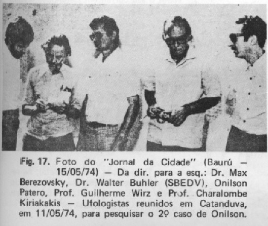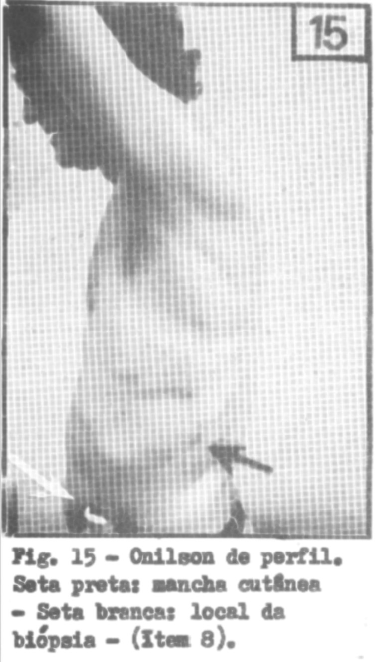 Temos também o diagnóstico do Dr. Berezowski e seu próprio relatório, no qual é dito que Onilson estava perfeitamente normal em todos os aspectos. Possuo também as fotos tiradas das manchas achadas no corpo do homem, cópias das quais enviei à APRO na época. Eu ainda tenho estas fotos, as análises clínicas e até mesmo o eletroencefalograma, mais os relatórios assinados do Dr. Berezowski e de Guilherme Wirz.