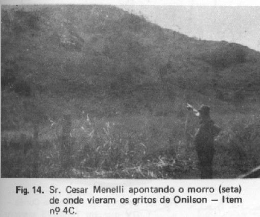 Parece que a descida do morro, com ausência da Lua, em terreno de altos e baixos, pedras grandes e pequenas, deve ter desesperado Onilson. Isso foi confirmado pelos gritos de socorro que de vez em quando lançava ao ar, ao longo das 3 horas de descida. Mais tarde, Onilson desenhou um croqui com o caminho de descida do morro.