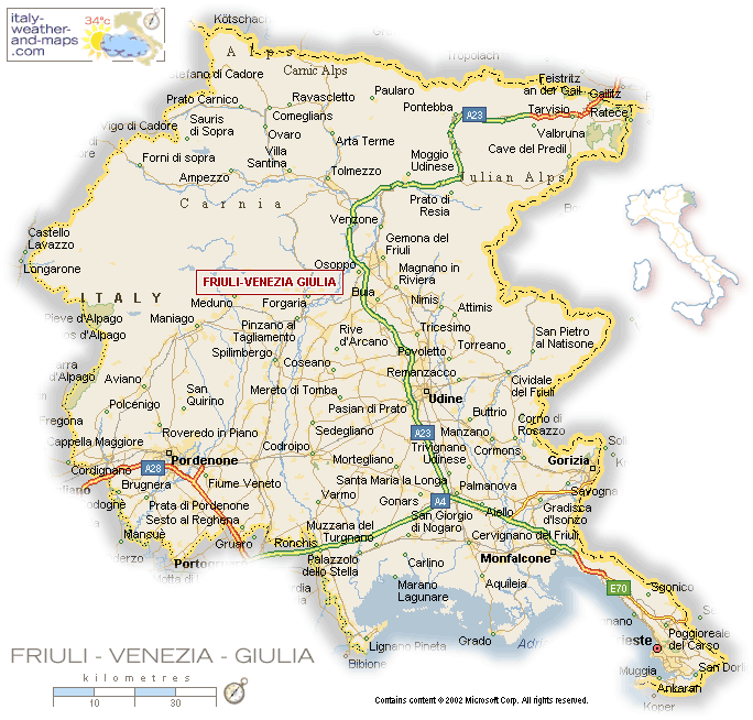 Região de Podernone, destaca em vermelho no mapa da Itália.