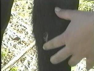Com a ajuda de Carlos Meissner, morador da região, construímos uma armadilha confeccionada com ferro. Como isca utilizamos dois patos (foto 12). Também conseguimos utilizar uma minicâmera infravermelha que, esperávamos, proporcionar-nos-ia imagens do I.E.A. atacando suas vítimas (foto13). Alguns dias aguardando, recebemos o telefonema do proprietário da chácara onde instalamos a armadilha, informando que esta havia sido disparada, mas que, infelizmente, fosse o que fosse que havia entrado, saiu com certa facilidade. Arrebentou os ferros e fugiu com uma das presas. Pelo menos conseguimos mais uma amostragem de pêlos. Apesar de utilizarmos a câmera que ficava constantemente filmando algumas galinhas, nada conseguimos de conclusivo, a não ser a inquietante desconfiança de que o predador desviara-se, convenientemente, do foco da câmera.