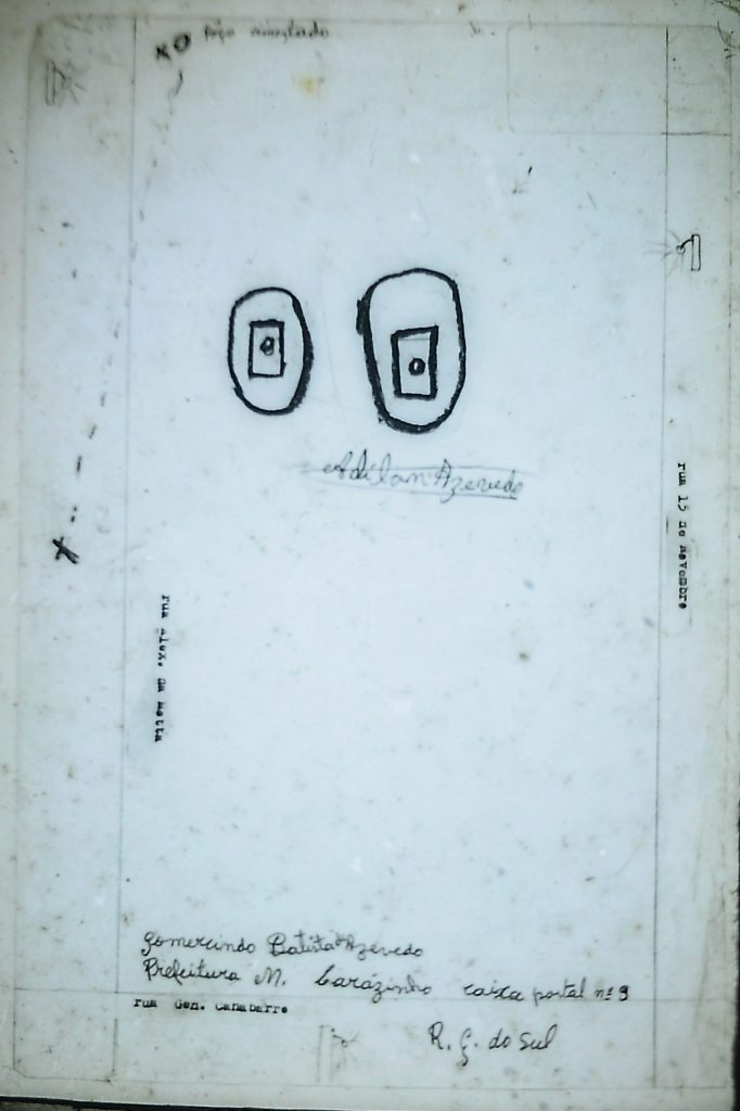 Croqui mostrando a posição dos objetos em relação ao poço de cimento. Imagem original do acervo da SBEDV.