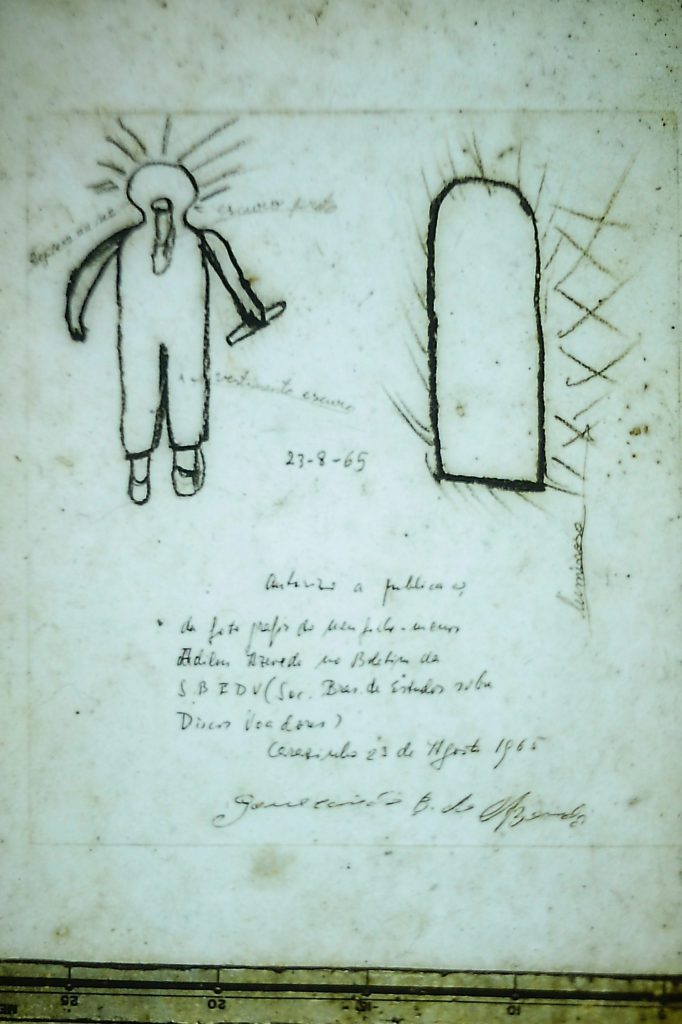 Adilon mostra como ficou observando os estranhos objetos. Imagem original do acervo da SBEDV.