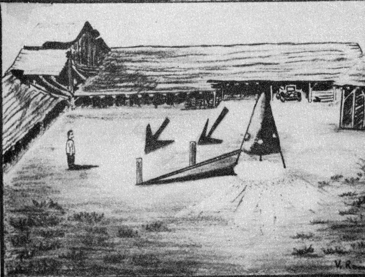 Telhado da Olaria danificado durante a decolagem do estranho objeto.