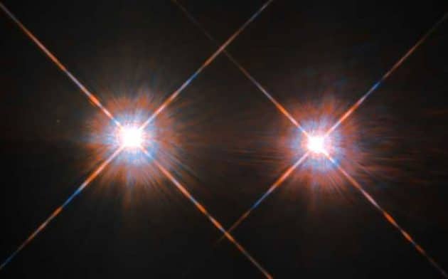 Imagem do Hubble das duas estrelas Alpha Centauri A e B, que juntamente com a anã vermelha Alpha Centauri C formam um sistema estelar triplo e também são as estrelas mais próximas do nosso sol. Créditos: ESA/Hubble & NASA