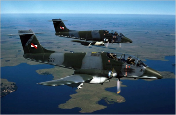Caças Pucará, semelhantes aos usados em tentativas de interceptaçaõ à OVNIs, na noite de 19 de maio de 1986, sobre o Uruguai.