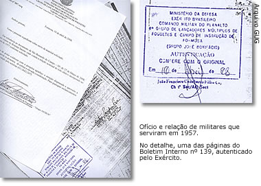 Ofício e relação dos militares que serviram em 1957. No detalhe, uma das páginas no Boletim Interno nº 139, autenticado pelo Exército.