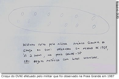 Croqui do OVNI efetuado pelo militar que foi observado na Praia Grande em 1987.