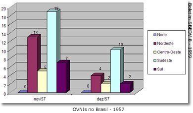 No Boletim SBEDV N° 08, editado em 1959, vislumbramos a estatística da onda de 1957. Foi registrado um total de 62 casos no último bimestre daquele ano, sendo que somente em novembro foram computadas 19 ocorrências na região sudeste. Novembro foi o pico da onda ufológica daquele ano.