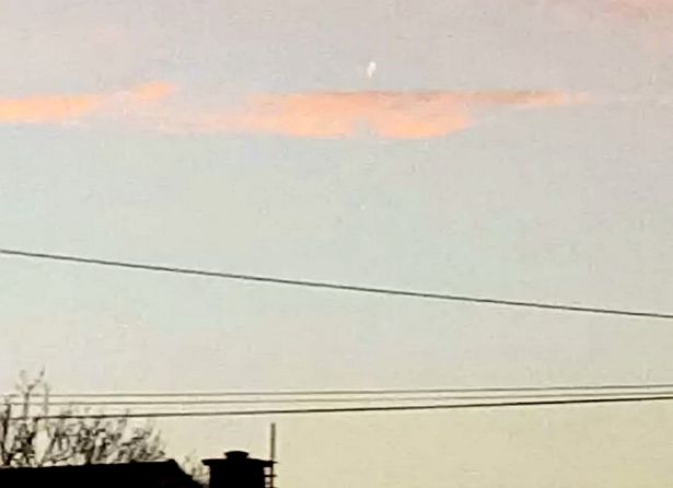 Lynn Murphy, 62, que tem interesse em abduções de OVNIs e alienígenas, notou pela primeira vez dois objetos no céu acima de sua casa em Connah’s Quay, North Wales, em 16 de março por volta das 18h . Imagem: Lynn Murphy/SWNS)